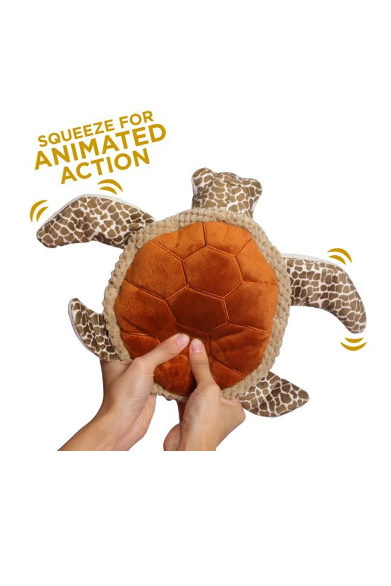 Let your pup join in on the fun and endless interactive playtime with the Tall Tails Animated Sea Turtle Dog Toy! This twitchy, squeaky, crinkly sea turtle not only gives your pup vital stimulation, but also provides cuddly snuggles and endless entertainment.